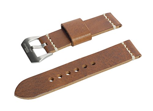Best Seller! 22mm Antique Tan Full Thickness Italian Leather Watch Band with Satin Finished Stainless Steel Buckle Review