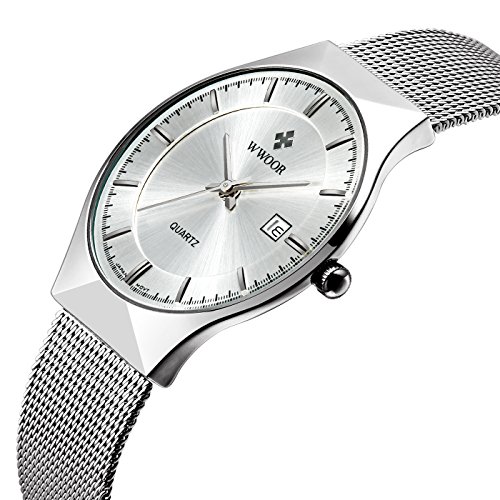Affute offer Affute Fashion Mens Watch Mesh Band Japanese Analog Quartz Movt Thin Dial Date Wrist Watches,White. This awesome product currently limited units, you can buy it now for £39.99 £26.99, You save £13