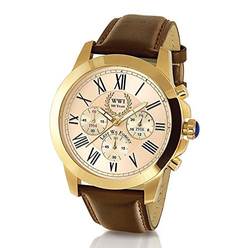 If you are looking for a product The Bradford Exchange - 100th Anniversary WWI Commemorative Men's Watch - Gold-Plated Casing with Genuine Leather Strap then I will show you information and reviews about this product. The Bradford Exchange - 100th Anniversary WWI Commemorative Men's Watch - Gold-Plated Casing with Genuine Leather Strap searched by people on the internet then not to run out of this stock. Make purchases with the click of a button 'Buy Now' if you really want to have this product. The following information and reviews about this product: