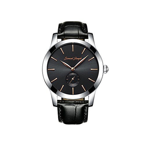 Best Seller! Samuel Joseph Bespoke Men's 43mm Wrist Watch - Master Crafted with Galaxy Gold - Black Dial, Steel Case, and Black Leather Band Review