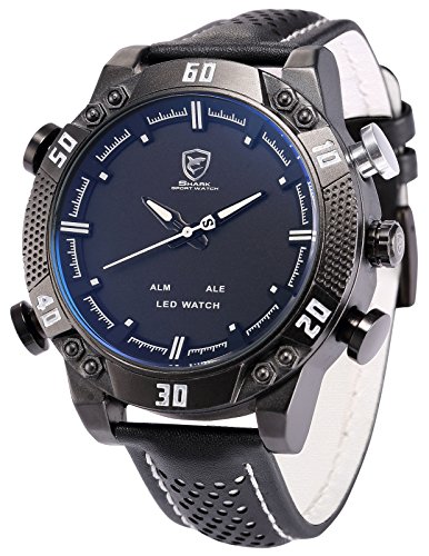 If you are looking for a product Shark Men's LED Date Day Alarm Digital Analog Quartz Sport Black Leather Band Wrist Watch SH264 White then I will show you information and reviews about this product. Shark Men's LED Date Day Alarm Digital Analog Quartz Sport Black Leather Band Wrist Watch SH264 White searched by people on the internet then not to run out of this stock. Make purchases with the click of a button 'Buy Now' if you really want to have this product. The following information and reviews about this product: