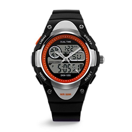 The watch is suitable for children's daily use or helping children learn to tell the time. If you are looking for a watch for your kids'daily use or helping children learn to tell the time, this watch is for you. This watch is of good quality, durable, with digital and analog display, waterproof and back light function. The function of this watch can meet the needs of daily use. For example, When it's raining or taking a shower, you don't need to take off the watch. In the dark or at night you can also check the time. One year quality assurance If the watch is not damaged by non-human factors in a year, please feel free to contact us. We will give you a free replacement watch or a refund. This watch is well packaged and suitable as a gift. Package includes: 1* watches, 1*English instructionsIf you want to buy TOPCABIN Boys Girls Resin Hands and Digital Wristwatch Child student Swim Sport Digital Watch -50m WaterProof Watch Black safely and comfortably please click on the button below: