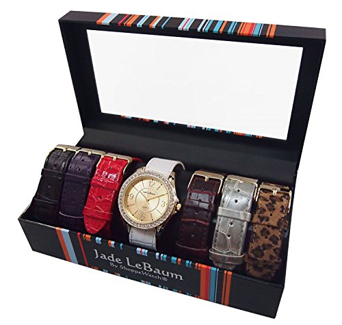 ShoppeWatch offer Womens Watch Set Seven Interchangeable Faux Leather Straps Goldtone Dial Designer Jade LeBaum - JB202753G. This awesome product currently limited units, you can buy it now for £25.00, You save -